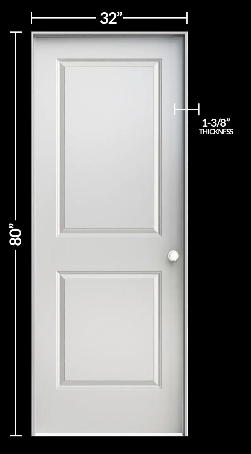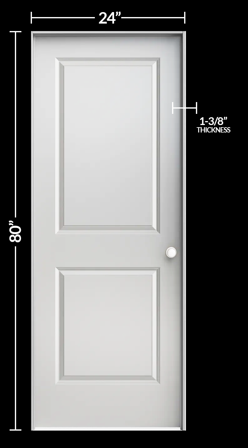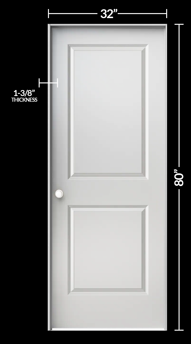 Prehung interior door 2-panel primed composite hollow core with flat jamb.